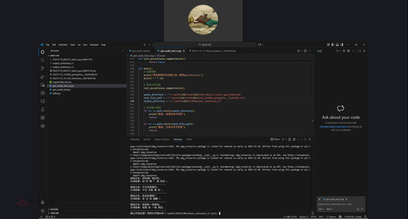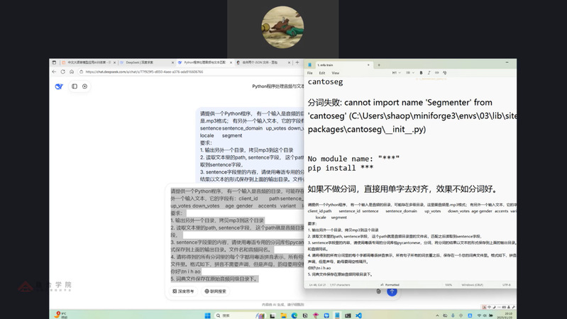 邵老师演示利用pycantonese工具包处理粤语Common Voice数据及分词转拼音的操作界面