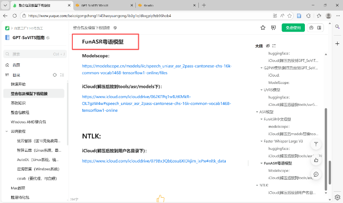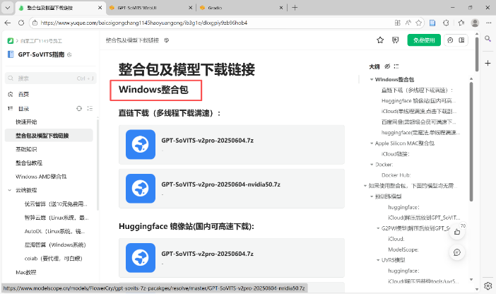 直接下载整合包,其中已包括完成部署的模型及相关代码。