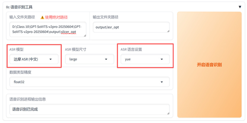 (2)语音识别:选用达摩院FunASR模型,选择粤语模式对切分音频进行转写,生成“音频-文本”对应列表。识别过程中缺失的模型会自动下载。