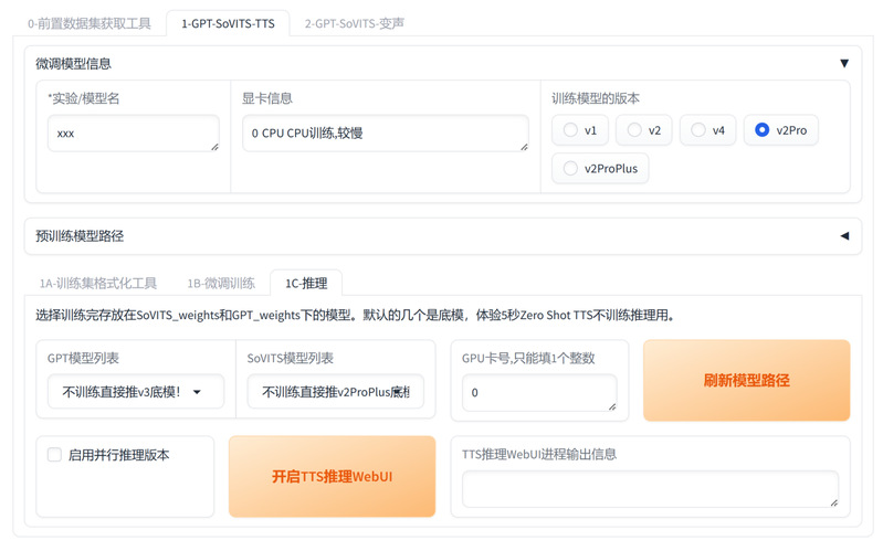 在Web UI 中点击“1c-推理”弹出独立推理界面,需上传一段校对正确的参考音频及对应文本作为指导信号,选择训练好的模型权重,输入目标文本即可生成语音。即使未完全训练完毕,也可通过已保存的checkpoint尝试合成,提前验证效果。