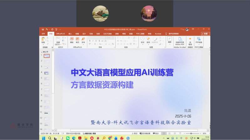 11月6日晚,AI训练营第二课《方言数据资源构建》正式开讲。本次课程由暨南大学文学院博士研究生陆晨与科大讯飞研究院研究员邵鹏飞联合授课,为学员们系统讲解了方言数据资源从构建到标注的全流程,带来了一场理论与实战紧密结合的知识盛宴。课程上半场,陆晨以暨南大学-科大讯飞方言语音科技联合实验室正在研发的“潮州方言语音合成系统”为案例,系统阐述了低资源语言语音合成系统的整体架构与数据库构建流程。她围绕系统前端的文...